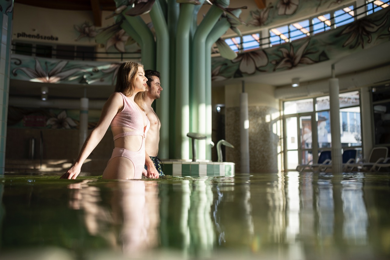 Vendégeink a termálvilág szolgáltatásait igénybe véve pihenhetnek, regenerálódhatnak. Itt beltéri és kültéri gyógyvizes medencéket találunk nyakzuhannyal, pezsgőággyal, hátmasszírozóval. Ezen kívül szaunavilág, kneipp medence, pezsgofürdő szolgálja a regenerálódást. Az 510/2023. (XI. 20.) Kormányrendelet értelmében 14 éven aluliak fürdőzése a medencében nem engedélyezett! Relaxációs kezelések fürdővendégek számára: pezsgőfürdő, sportmasszázs, frissítőmasszázs, talpreflex masszázs, arcmasszázs, csokoládémasszázs A masszások igénybevételére előzetes időpont egyeztetés szükséges, melyet megtehetnek a +36 (42) 475-031 telefonszámon.